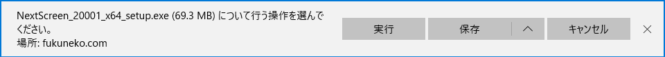 「保存」を選んだ場合には、ダウンロードしたファイルをダブルクリックで実行します。